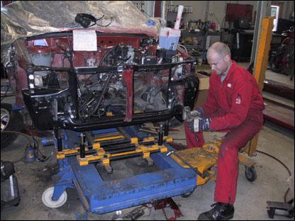 Karosseriskader er berre ein del av vårt arbeidsområde. Her er Tore igang med å rette ein bil som har hatt eit ublidt møte med moder-jord. Med vår opprettar-jig kan vi rette både små og store skader. Vi har moderne hjulstillingsapparat der vi måler alle 4 hjula, senterlinjer og akselplasseringar opp mot fabrikkspesifikasjonar. Elles utfører vi det aller meste av jobbar på alle bilmerker. Vå allsidighet er vår styrke.