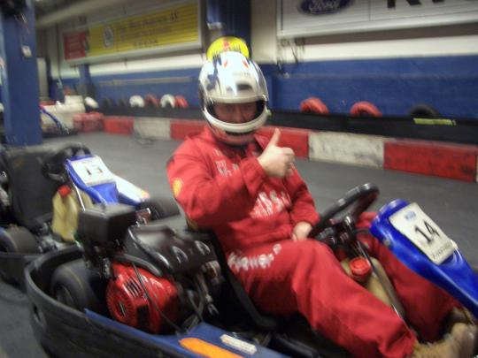 Her er ein av gjengen klar til innsats på gokartbana i Bergen..