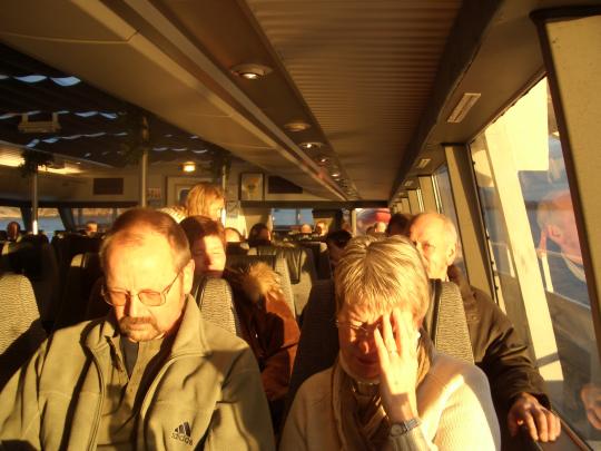 Sola skein og sette ein fin standard allereie i starten av turen. Her eit bilde frå ekspressbåten til Bergen.